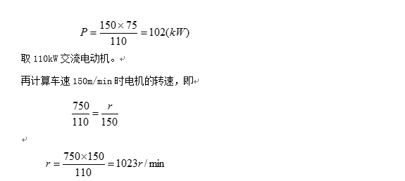 首先計算車速150m/min時所需電機(jī)的功率,考慮到紙機(jī)為恒轉(zhuǎn)矩負(fù)載,車速增高時電機(jī)功率按比例增加,于是:
