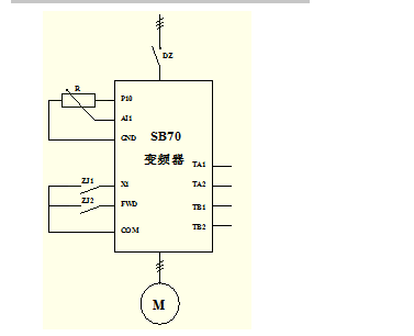 每個工序的變頻器控制原理基本相同,因此只畫一張圖作為代表。另外,工段和工序不同,功能設(shè)置也有一些差別,表中僅列出泥漿泵SB70G220變頻器功能設(shè)置參數(shù),僅供參考。