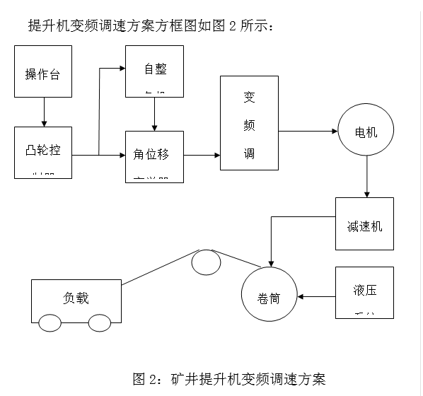 通過(guò)調(diào)研與論證,結(jié)合本公司礦井提升的現(xiàn)場(chǎng)實(shí)際情況,最終我公司技術(shù)中心做出決定,對(duì)提升機(jī)實(shí)施變頻調(diào)速改造,利用在機(jī)械行業(yè)中廣泛使用的自整角機(jī)來(lái)作為控制變頻器的速度給定。自整角機(jī)是通過(guò)角位移變送器輸出模擬量信號(hào),操作工人搬動(dòng)提升機(jī)操縱桿的角度,角位移變送器輸出相應(yīng)大小的模擬量信號(hào),由此控制變頻器運(yùn)行頻率,進(jìn)而控制提升的運(yùn)行速度。這種操作方式還可用變頻器多段速控制,提升機(jī)只能在這幾種速度下運(yùn)行。而角位移變送器輸出的是連續(xù)的角位移變送器輸出模擬量信號(hào),理論上提升機(jī)可在任意速度下運(yùn)行,操作起來(lái)會(huì)方便一些,且與原操作習(xí)慣相似,操作工人容易掌握。