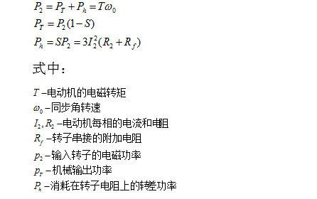 目前國(guó)內(nèi)各類礦山等提升機(jī)大都采用交流繞線式異步電動(dòng)機(jī)轉(zhuǎn)子串電阻方式調(diào)速方案,使用交流接觸器改變轉(zhuǎn)子電阻來(lái)進(jìn)行速度段的切換。對(duì)于繞線式電機(jī),無(wú)論在起動(dòng)?制動(dòng)還是調(diào)速中,采用轉(zhuǎn)子串電阻方式均會(huì)帶來(lái)電能損耗。這種損耗隨著轉(zhuǎn)速的降低,轉(zhuǎn)差率S的增大而增大。繞線式電機(jī)的功率關(guān)系為: