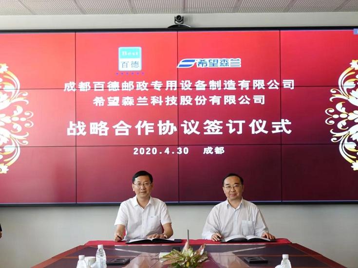 成都百德郵政專用設(shè)備制造有限公司董事長李承剛先生在簽約儀式上表示:“百德郵政22年,白手起家,從最初的鈑金發(fā)展到今天的智能化、機(jī)電信息一體化。我們注重研發(fā)、注重企業(yè)文化和團(tuán)隊(duì)建設(shè),非常期待與希望森蘭在上下游各產(chǎn)業(yè)鏈有更多更深的合作,具體到在智能化物流設(shè)備控制解決方案、企業(yè)文化、生產(chǎn)工藝流程優(yōu)化和協(xié)作等方面,加強(qiáng)合作,共同發(fā)展,做大做強(qiáng)!”