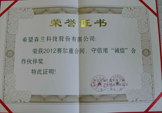 在2012年11月30日,在北京舉行的第二屆設(shè)計師優(yōu)選品牌評選活動上,森蘭變頻器憑借過硬的產(chǎn)品質(zhì)量和良好的市場口碑在榮獲““設(shè)計師優(yōu)選十大變頻品牌”稱號的同時,還榮獲了行業(yè)媒體頒發(fā)的重合同、守信用“誠信”合作伙伴獎。